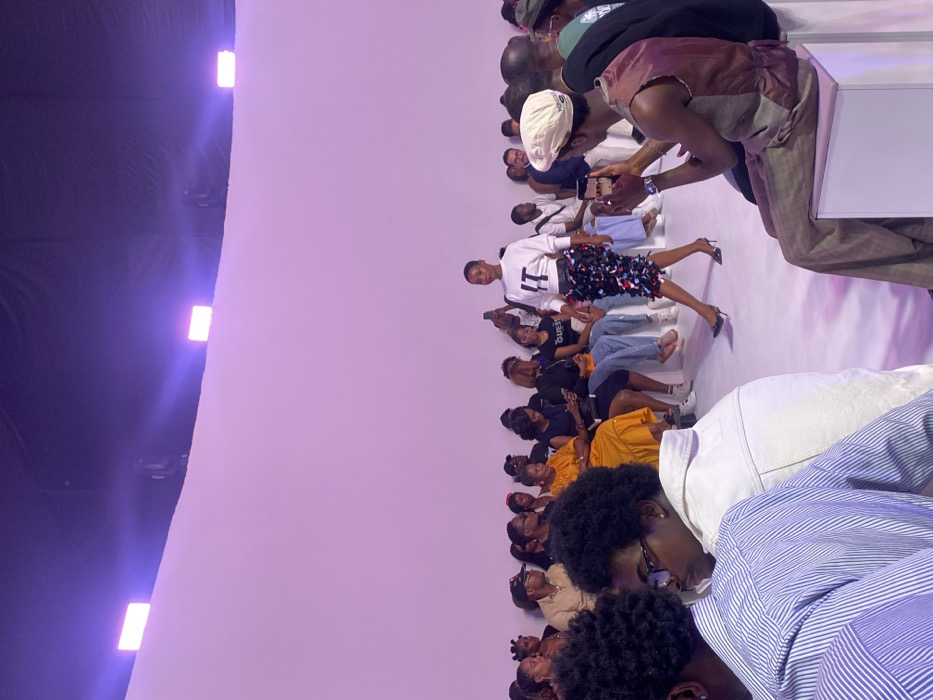 The image captures an indoor fashion show in Itirin, Nigeria