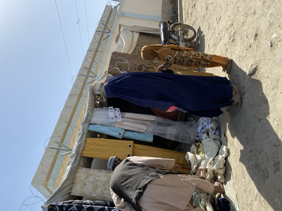 - "A man and two women stand at a stall piled with fabric" by FM-B5wmg2, licensed under CC BY 4.0