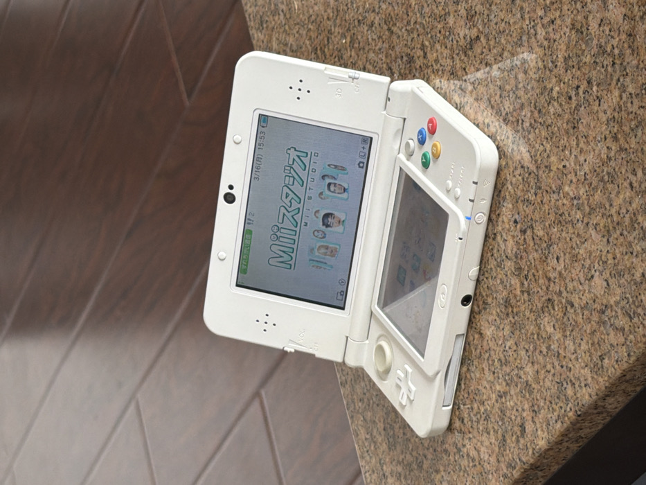 - "A white Nintendo 3DS portable gaming console is depicted open and powered on, resting on a polished, speckled brown and black granite countertop" by FM-RpOXy1, licensed under CC BY 4.0