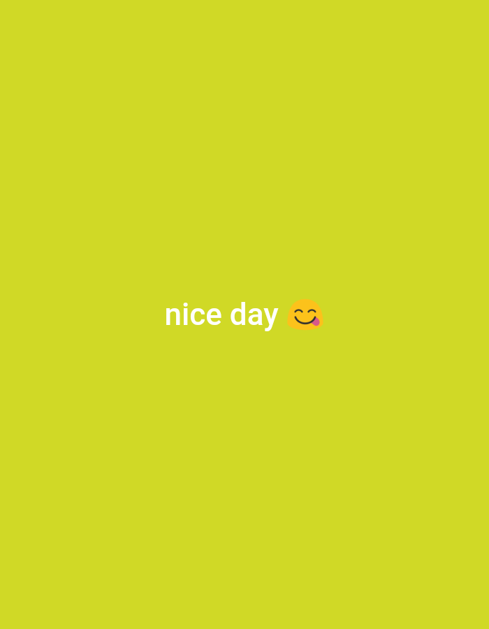 This image, located in the city of Maiburiji, Nigeria, features a uniform lime green digital background. White sans-serif text, "nice day," is centrally positioned, followed immediately to its right by a yellow circular emoji depicting a smiling face with an extended tongue. The scene is devoid of people, physical objects, actions, interactions, or a discernible real-world environment.