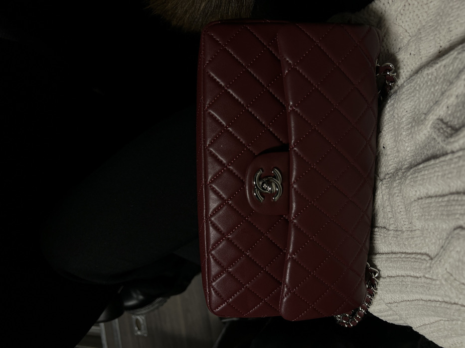 - "A dark-red quilted Chanel classic flap bag is centered" by FM-vVQbp1, licensed under CC BY 4.0