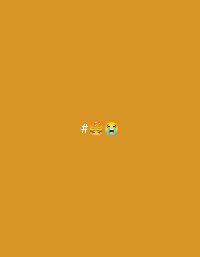 The scene, located in the city of Sagunto, Spain, consists of an abstract digital composition. The primary visual element is a uniform, solid dark orange background, consistent in hue across the entire frame. Centered on this background are three distinct emojis arranged horizontally. From left to right, these include a black hash symbol (#), followed by a multi-colored hamburger emoji (🍔) with a sesame seed bun, a patty, lettuce, and cheese, and finally, a yellow loudly crying face emoji (😭) with its mouth agape and two prominent streams of blue tears flowing from its eyes. No other subjects, objects, people, actions, or interactions are present within this minimalist digital environment.