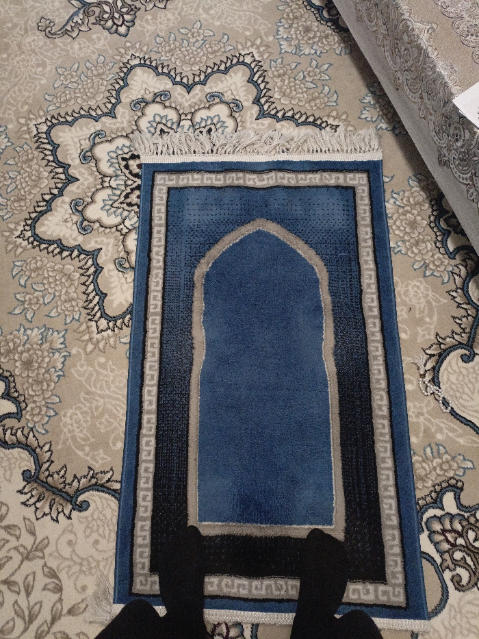 - "The image displays an indoor scene in Qoraqosh, Uzbekistan, centered on a blue prayer rug (sajjadah) laid upon a larger, patterned carpet" by FM-PzcUS2, licensed under CC BY 4.0