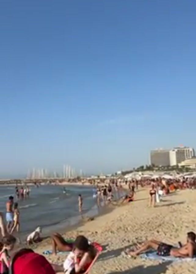 crowded beach on a sunny day