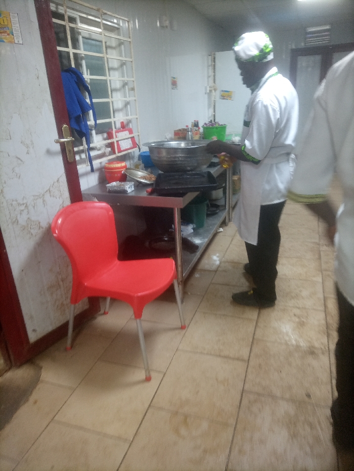 The image captures an indoor scene within a food preparation area or kitchen in the city of Opete, Nigeria