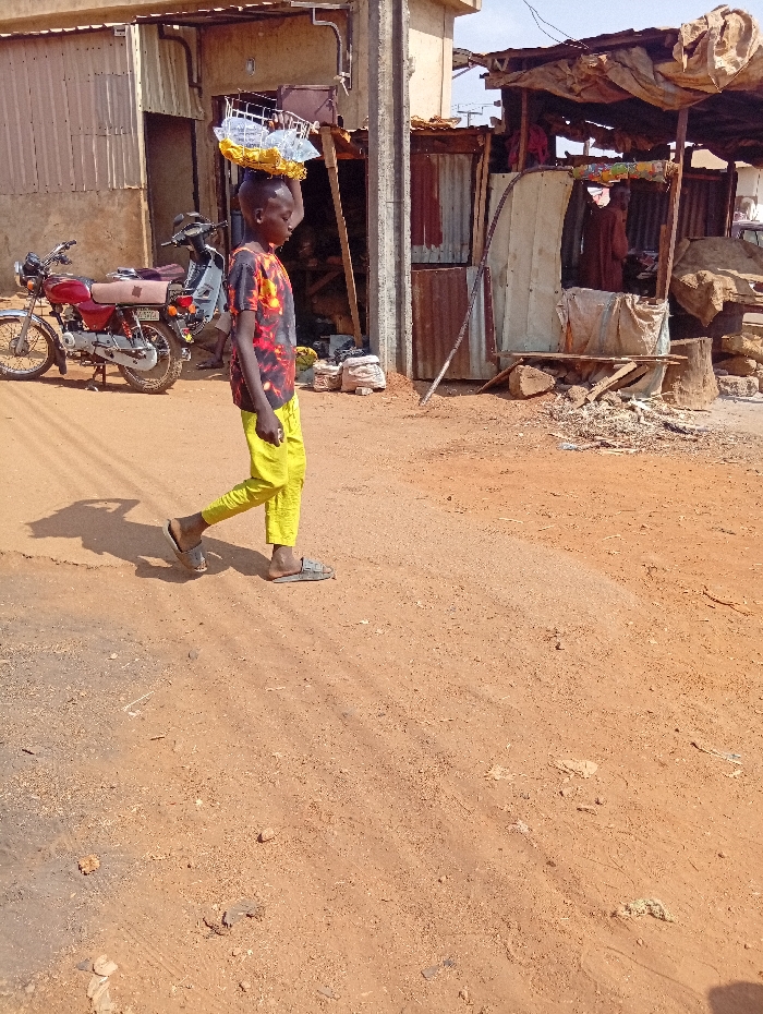 The image depicts a scene on a dirt road in Kafanchan B, Nigeria, under bright daylight