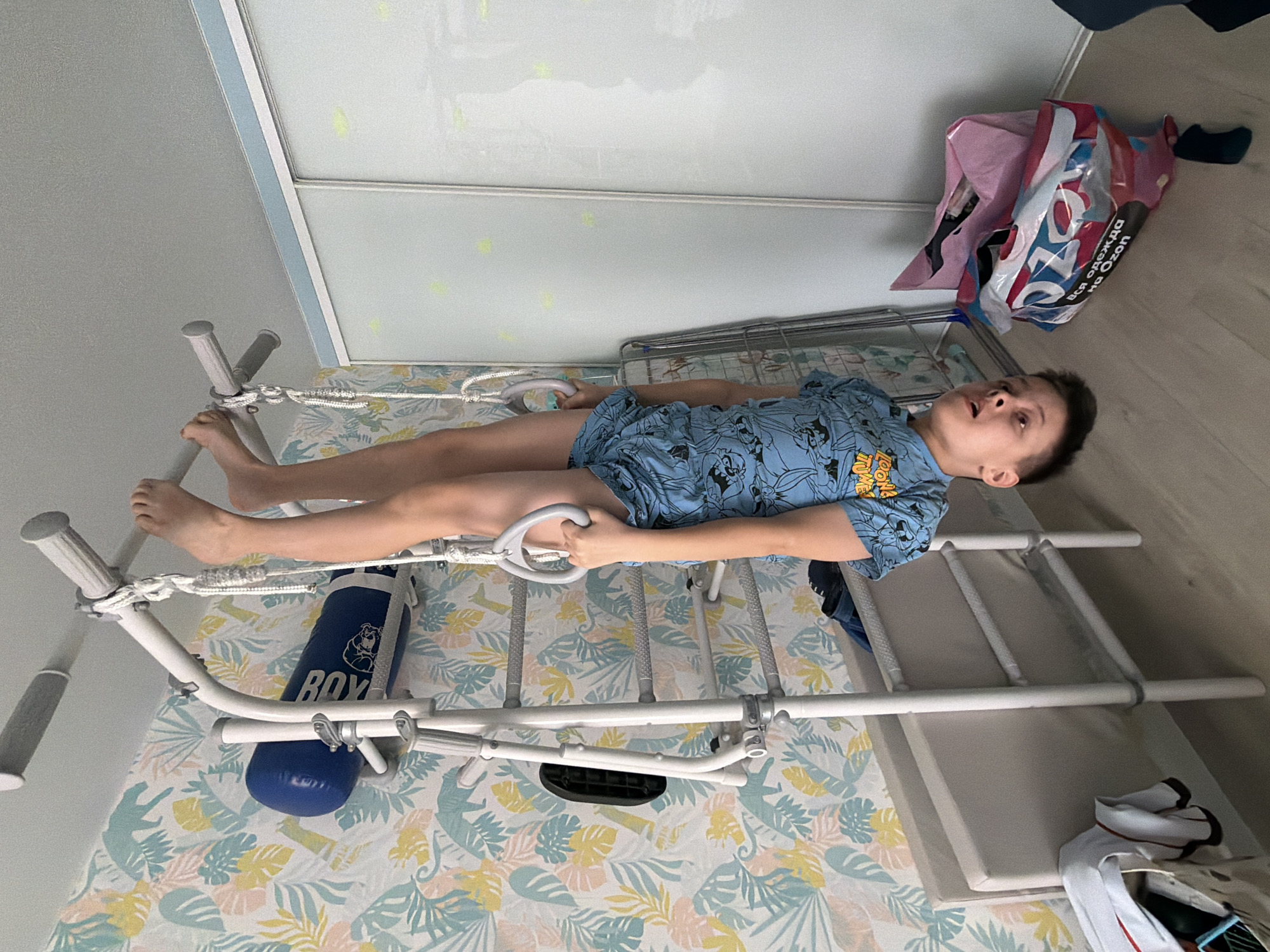 - "A child in blue pajamas hangs from gymnastics rings attached to a white metal frame" by FM-MNll92, licensed under CC BY 4.0