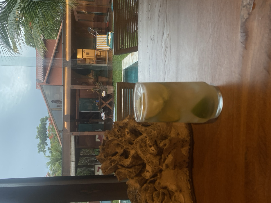 - "A refreshing drink with lime slices sits in a clear glass atop a rough, light-colored rock or coral structure" by FM-T4gP12, licensed under CC BY 4.0