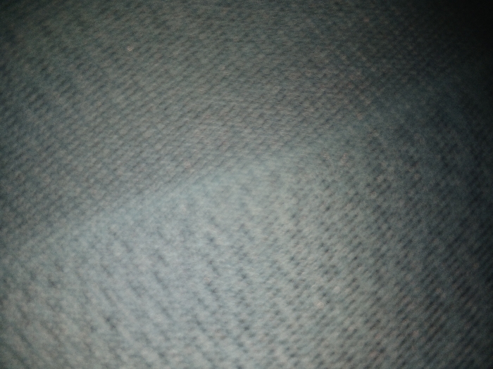 close-up of a textile, likely denim, with a visible twill weave pattern. The fabric has a muted, cool tone, appearing as a blend of blues and grays. The texture is soft and slightly blurred, suggesting the image was taken at a close range and potentially out of focus. The lighting is uneven, with darker areas fading to lighter areas.