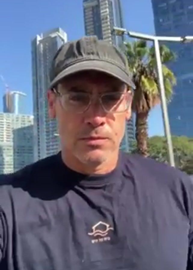 A man wearing a dark baseball cap, glasses, and a dark t-shirt with a logo is speaking to the camera