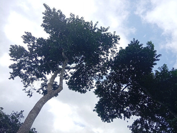 - "The image presents an upward-looking view of dense tree canopies against a cloudy sky in Ejule, Nigeria" by FM-aCLjl2, licensed under CC BY 4.0