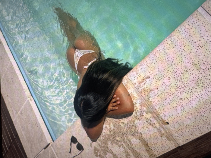 - "An overhead view depicts a single individual, appearing to be an adult female, partially submerged in a swimming pool" by FM-uodRx2, licensed under CC BY 4.0