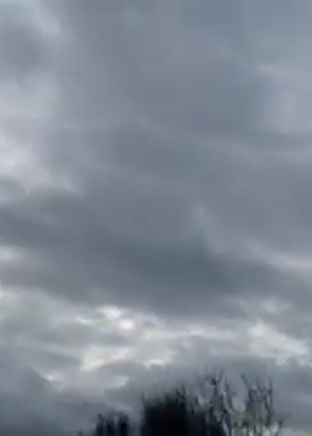 view from a moving vehicle, likely a car. The sky is overcast with gray clouds. As the vehicle moves, the camera captures the landscape, including tall grass, bushes, and trees. In the distance, there is a glimpse of the sea and buildings on a hillside. The overall impression is of a cloudy day near the coast.