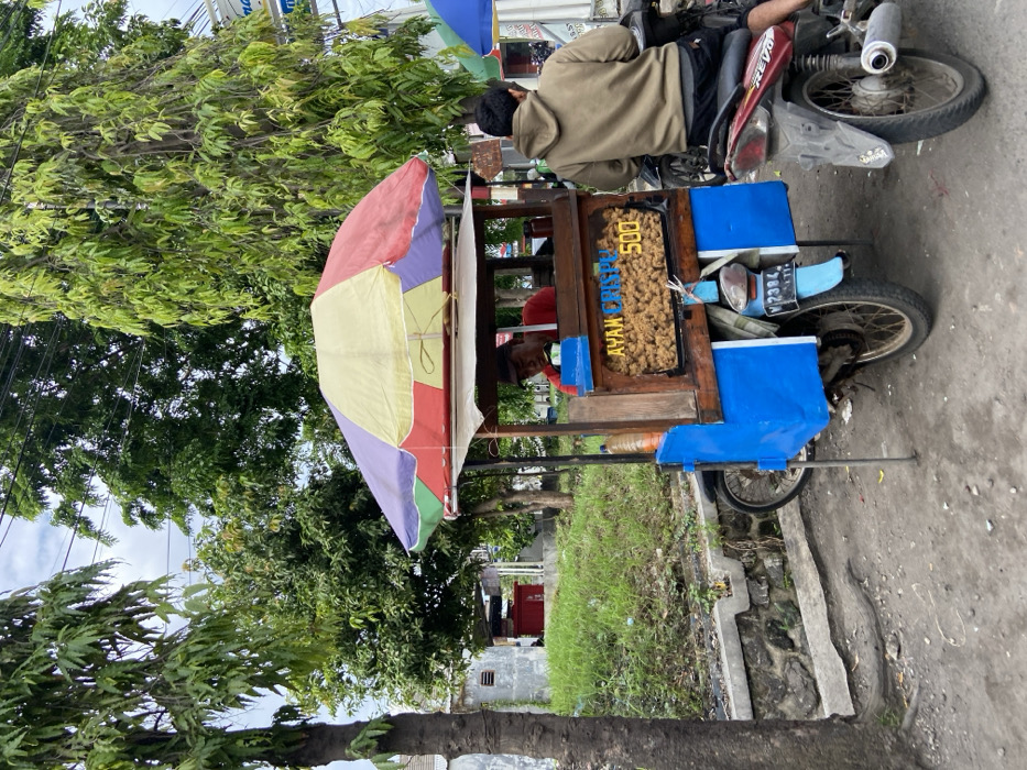 - "The scene depicts a mobile food vending operation on a dirt shoulder in Balonggabus, Indonesia, set against a backdrop of lush green trees and a cloudy sky" by FM-htxI33, licensed under CC BY 4.0