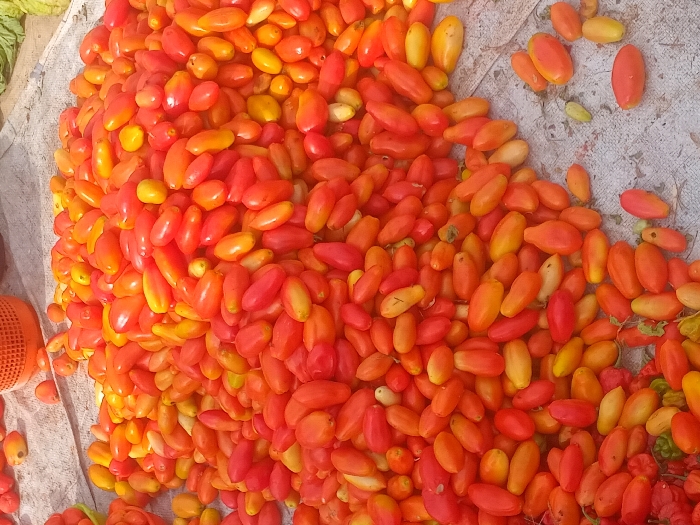 - "A large, dense accumulation of approximately 500-700 elongated, plum-type tomatoes dominates the scene" by FM-Y4XE53, licensed under CC BY 4.0