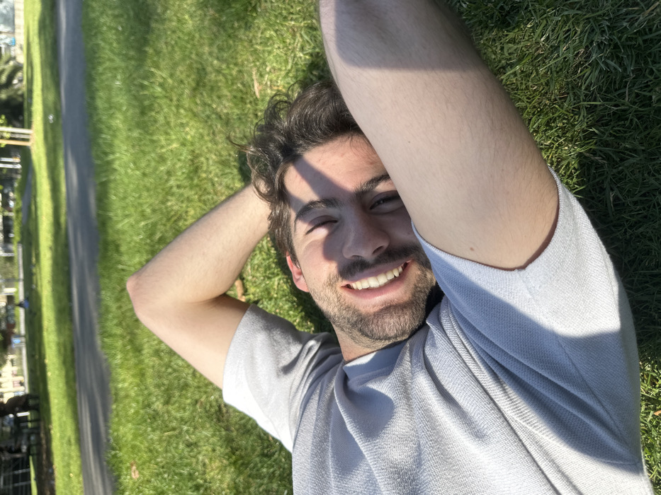 - "A male individual is depicted lying on his back on green grass in a sunny outdoor setting, identified as a park in Carlton, Australia" by FM-P0ePn2, licensed under CC BY 4.0