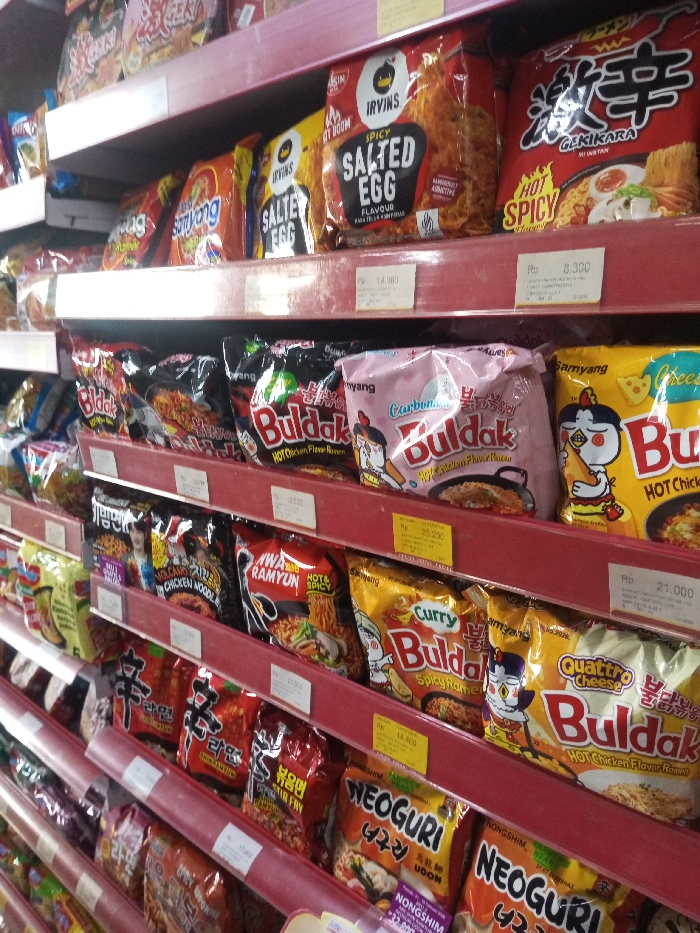 - "A well-stocked supermarket shelf showcases a variety of instant noodles" by FM-3mobU2, licensed under CC BY 4.0