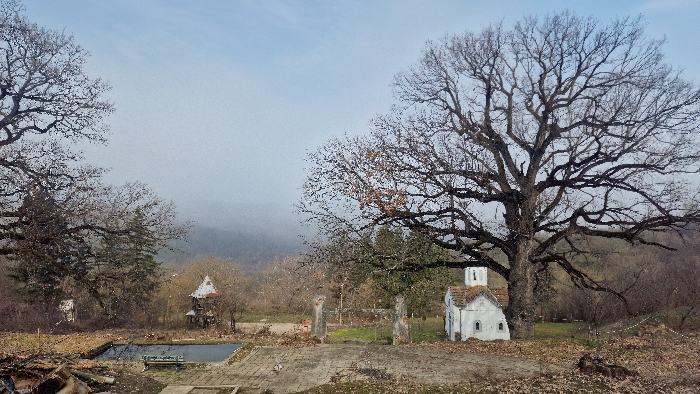 The image displays an outdoor scene, indicative of late autumn or winter, located in Topolovets, Bulgaria