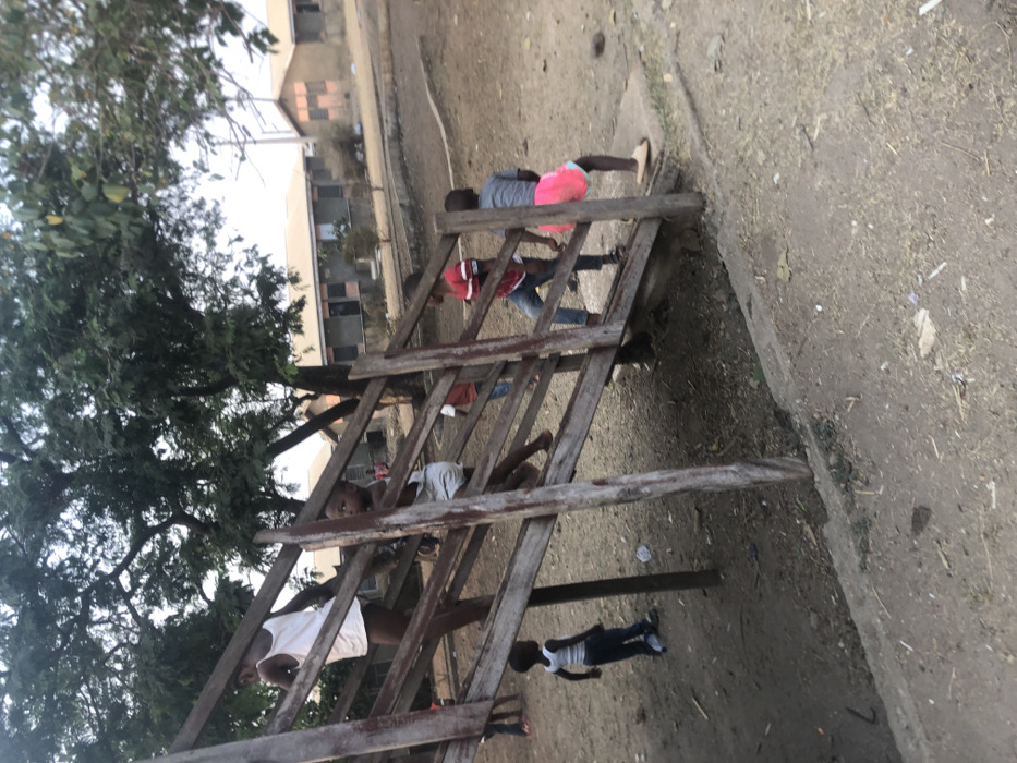 - "The scene is an outdoor play area in Masaka, Nigeria, featuring a group of children interacting with a rustic wooden climbing structure" by FM-EuIdR2, licensed under CC BY 4.0