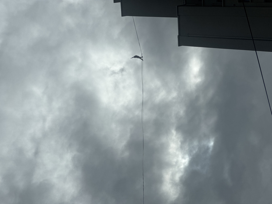 - "The image captures a high-angle view of a single individual performing a high-wire walk against a heavily overcast sky in Villeurbanne, France" by FM-6wyrF3, licensed under CC BY 4.0