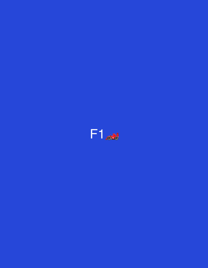 solid blue background with the text "F1" and a small red Formula 1 race car image to the right of it