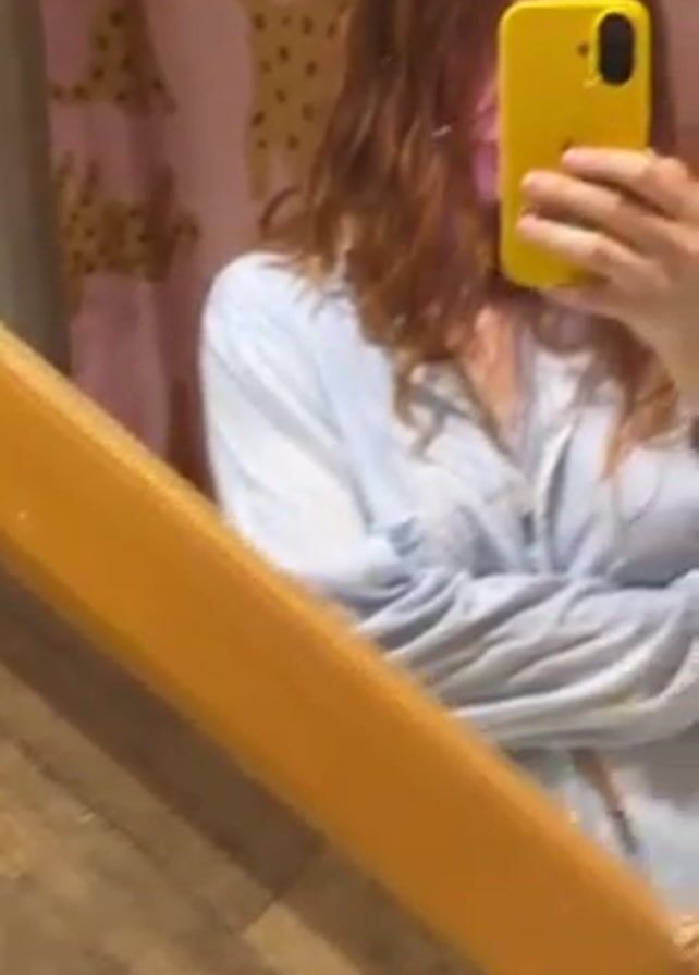 A young woman is taking a selfie in a mirror