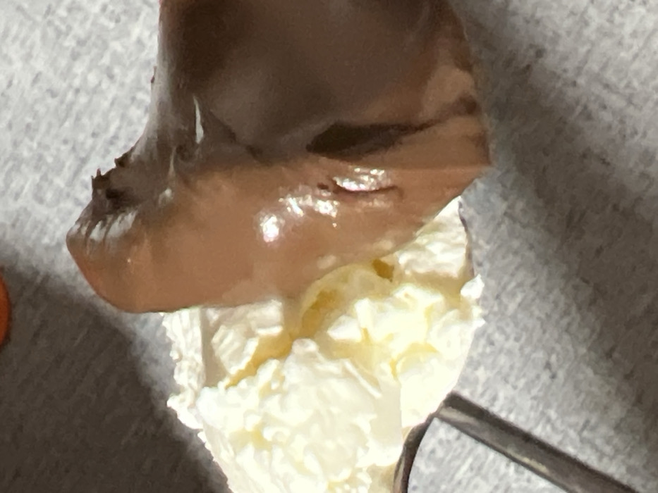 - "A scoop of white ice cream is heavily topped with a glossy, dark brown, likely chocolate, sauce" by FM-YPNSq2, licensed under CC BY 4.0