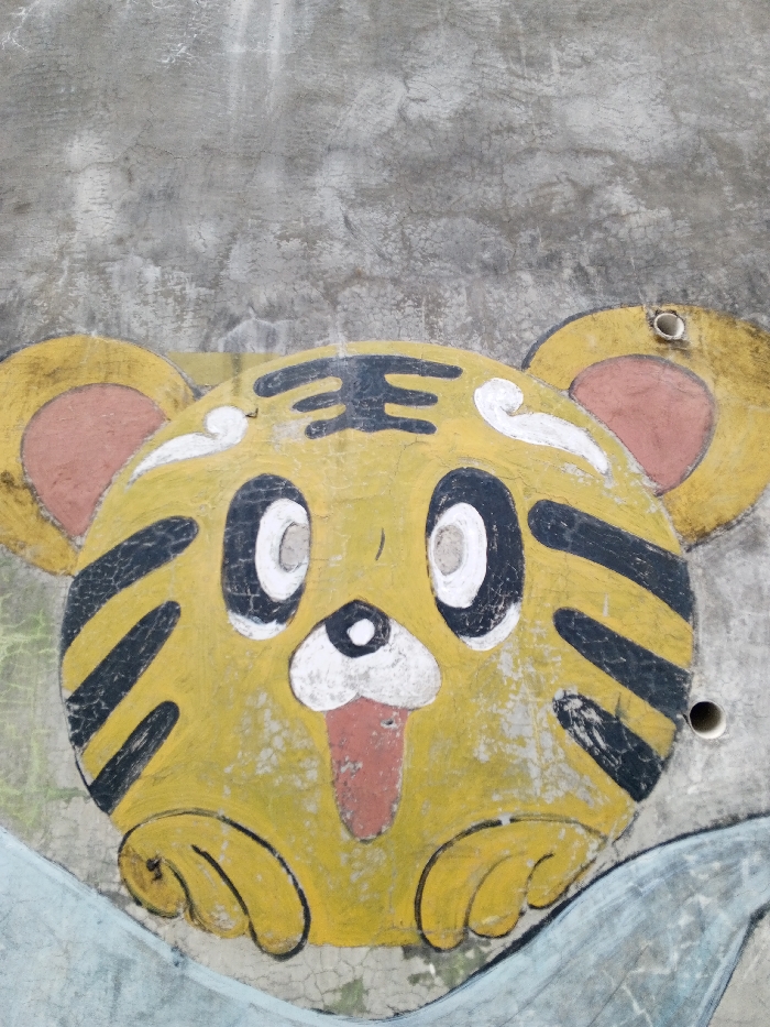 - "A weathered concrete wall in Voa Yeav, Cambodia, displays a cartoon-style mural depicting a yellow tiger's head and upper body" by FM-mvqYv1, licensed under CC BY 4.0