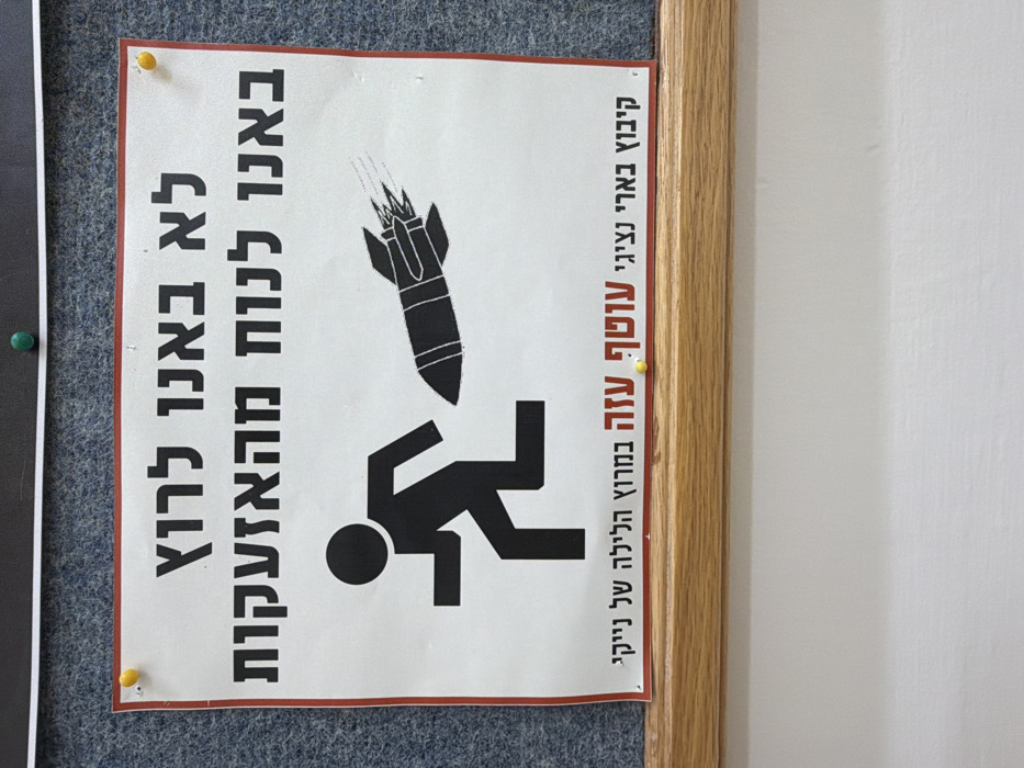 The image features a poster in Hebrew