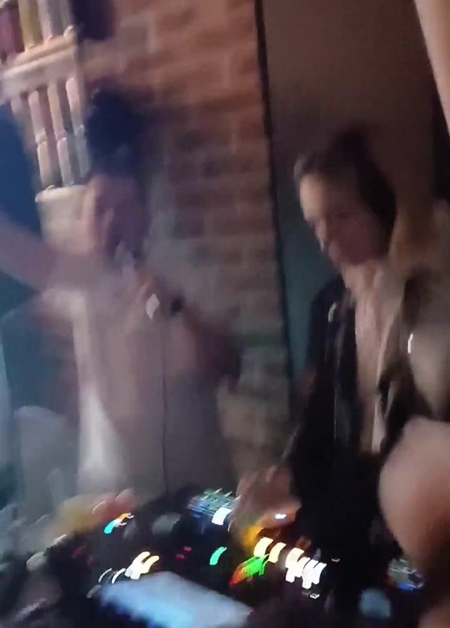 The video captures a DJ performing in what appears to be a nightclub or bar setting