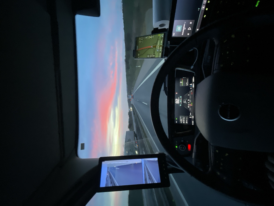 - "The image presents a driver's perspective from within the cabin of a Volvo heavy goods vehicle (truck), identified by the emblem on the steering wheel, traveling on a multi-lane asphalt highway in Wallhausen, Germany" by FM-aSc183, licensed under CC BY 4.0