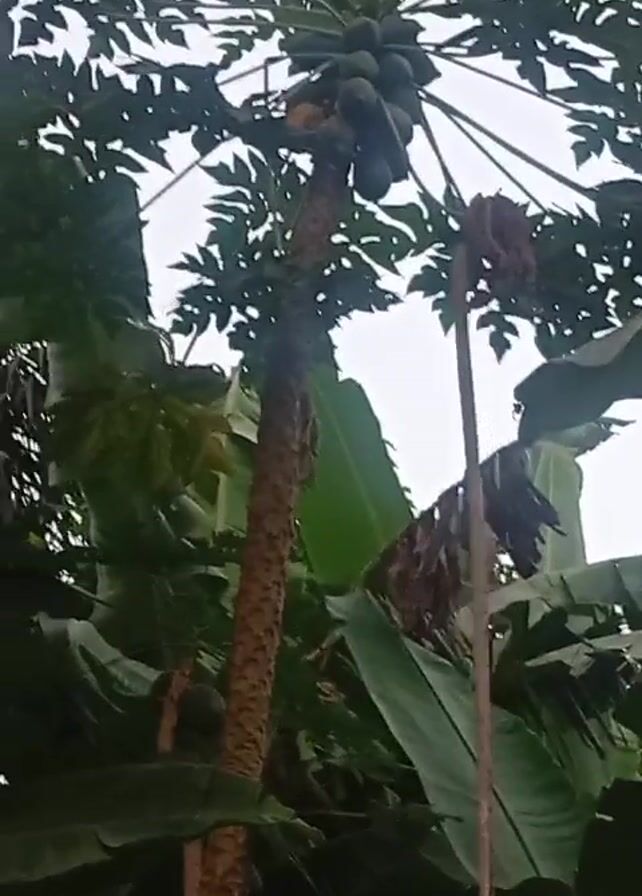 - "papaya tree laden with fruit, interspersed with banana trees and other foliage under an overcast sky" by FM-aODmX2, licensed under CC BY 4.0
