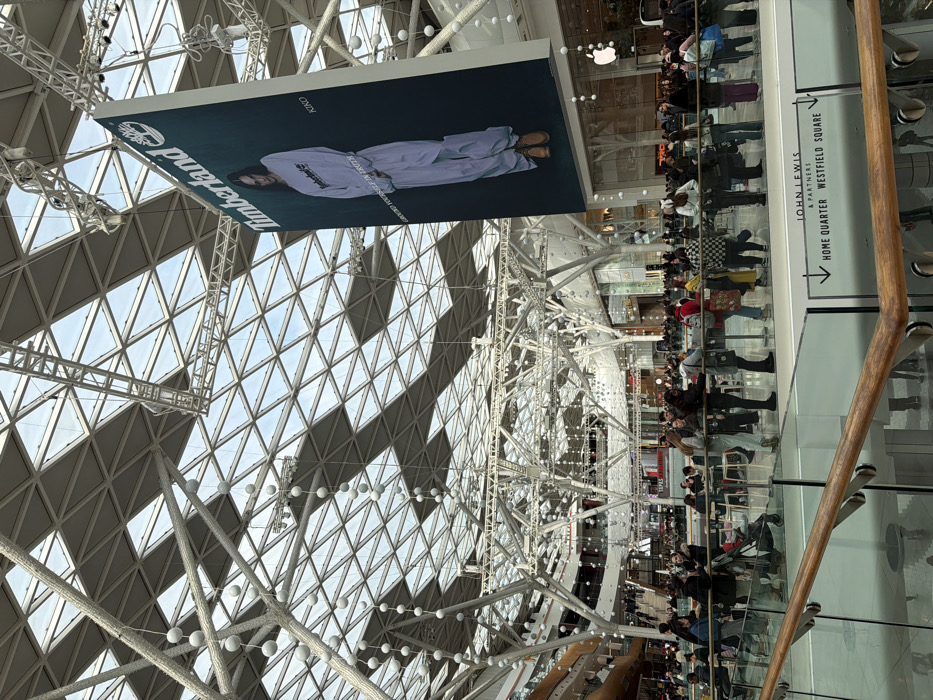 - "The image captures a crowded interior scene within Westfield London, United Kingdom, specifically near Westfield Square as indicated by a directional sign for "John Lewis & Partners Home Quarter" by FM-hpuPv1, licensed under CC BY 4.0