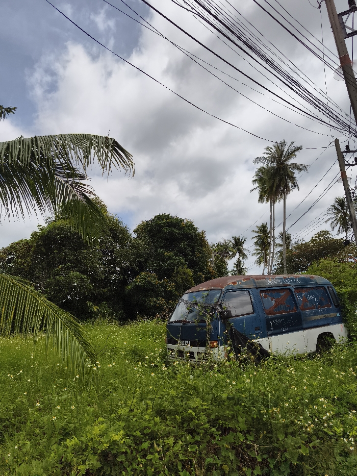 - "An old blue and white Isuzu van sits abandoned in overgrown green foliage under a cloudy sky" by FM-H4hzl2, licensed under CC BY 4.0