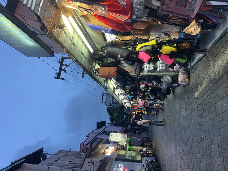 - "An outdoor market scene is depicted on a paved street in บ้านบางรักษ์, Thailand, at dusk or night, under an overcast dark blue sky" by FM-Nu6Ik2, licensed under CC BY 4.0