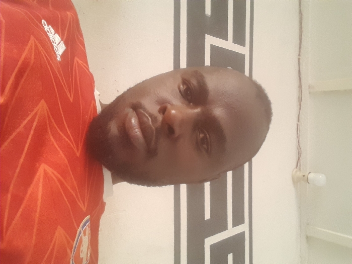 In the city of Unknown, Unknown, a male individual with a brown skin tone, short dark hair, and a full beard and mustache is captured in a head-and-shoulders, low-angle shot, looking directly at the camera. He wears a red short-sleeved Adidas sports jersey featuring an orange geometric pattern and an Arsenal Football Club crest on the right chest. The background consists of a white wall adorned with a horizontal black and white geometric frieze. Above, a white ceiling supports a bare light bulb in a beige fixture, with exposed reddish-brown electrical wiring running horizontally along the wall-ceiling intersection.