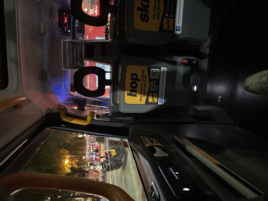 - "The image depicts the interior of a London black cab at night, viewed from a rear passenger seat, looking forward and towards the left exterior" by FM-UbrGS2, licensed under CC BY 4.0