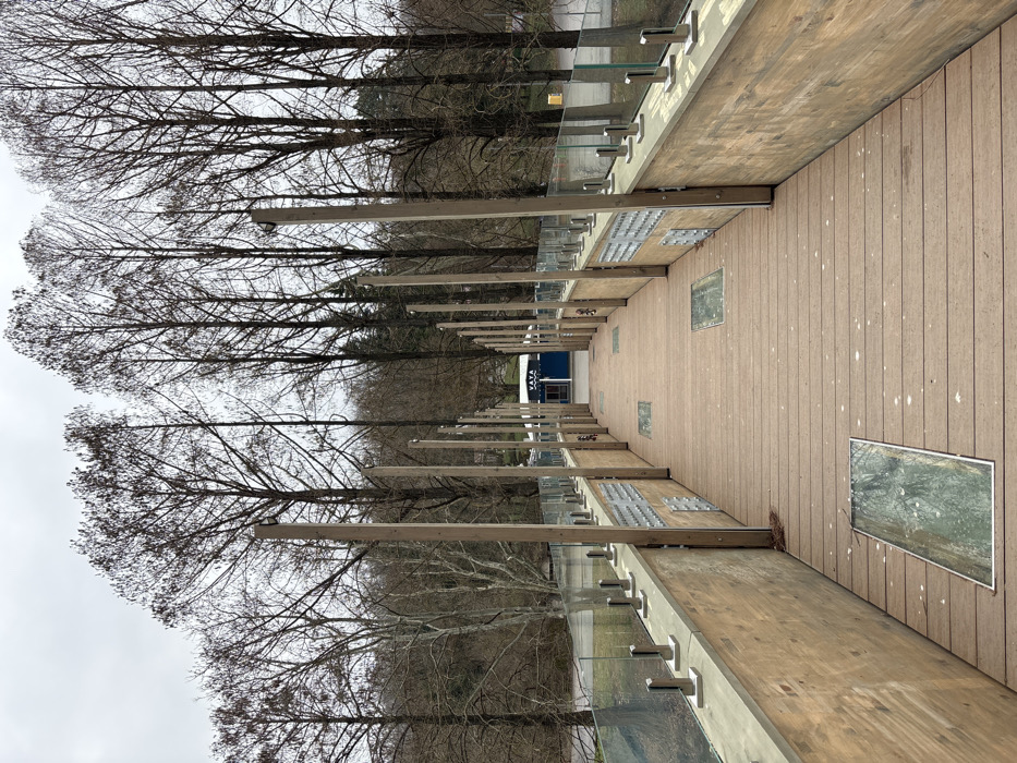 - "The image presents a modern pedestrian walkway or bridge, extending into a wooded park or forest environment in Nikolovo, Bulgaria, under an overcast sky" by FM-TOlO53, licensed under CC BY 4.0