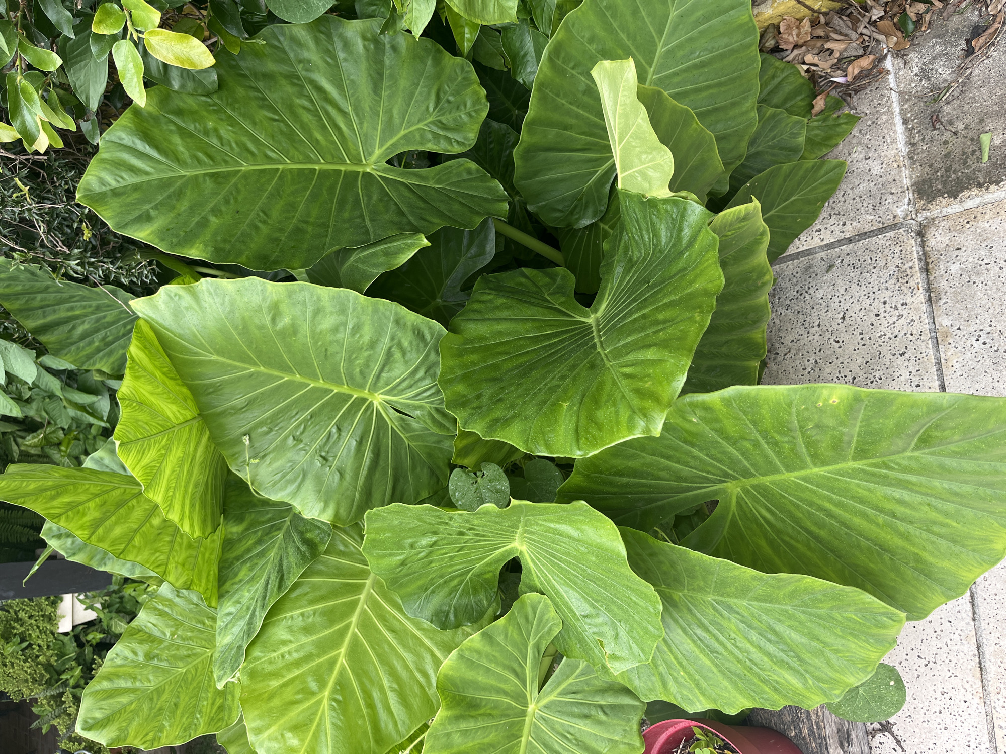 - "The image displays a dense arrangement of large, vibrant green leaves, characteristic of plants such as Alocasia or Colocasia, occupying the majority of the frame" by FM-CMArk2, licensed under CC BY 4.0