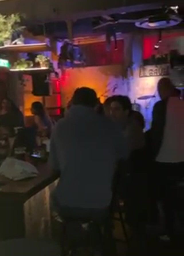 interior of a dimly lit bar or pub with a lively atmosphere