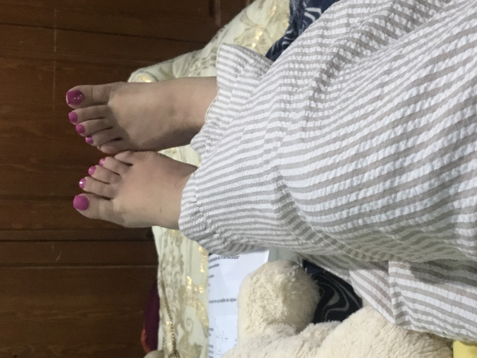 The image displays a close-up view of a pair of human feet in an indoor setting in Ouislane, Morocco