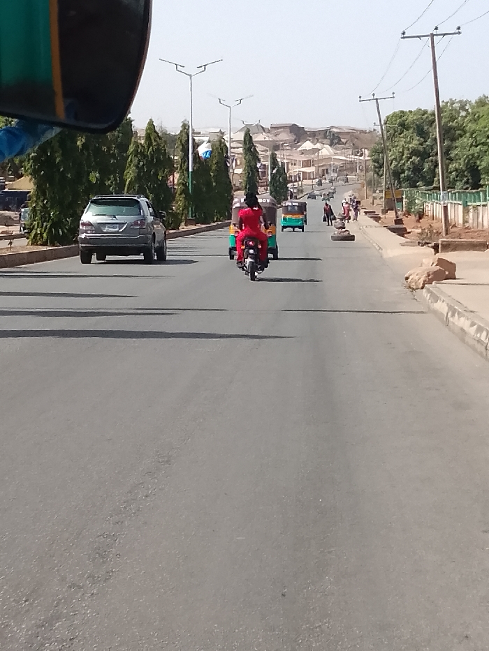 - "This image depicts a daytime street scene on an asphalt road in Jos, Nigeria, looking forward from the interior of a vehicle" by FM-Zezex1, licensed under CC BY 4.0