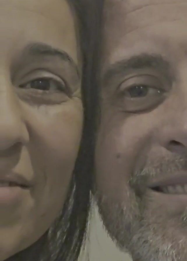 A man and a woman, with dark hair, are close to each other and look at the camera