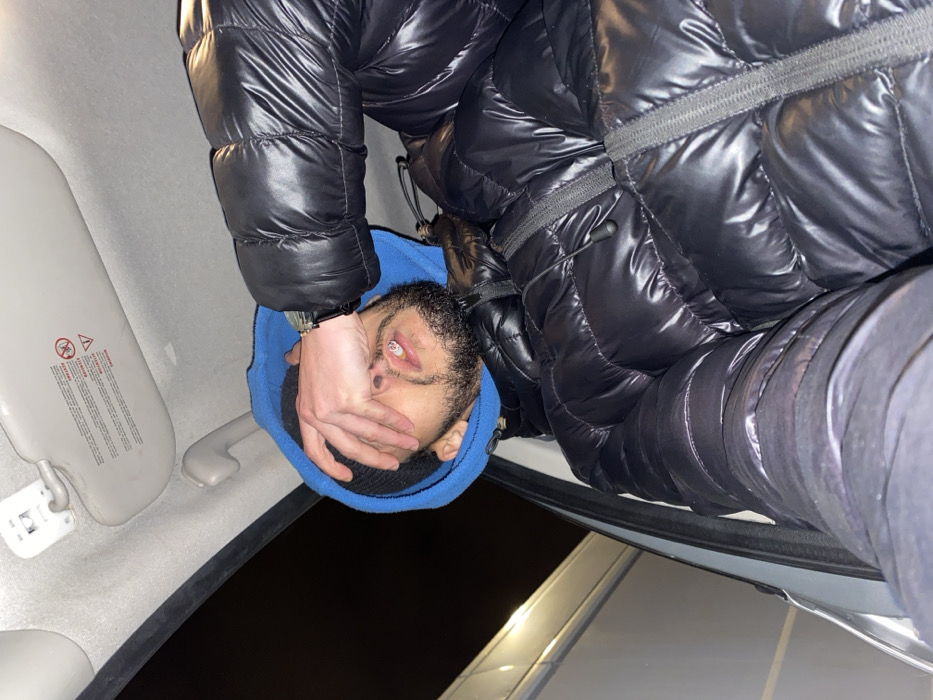 - "A disoriented individual sits inside a car, wearing a blue hooded sweatshirt under a shiny black puffer jacket" by FM-WEULP2, licensed under CC BY 4.0