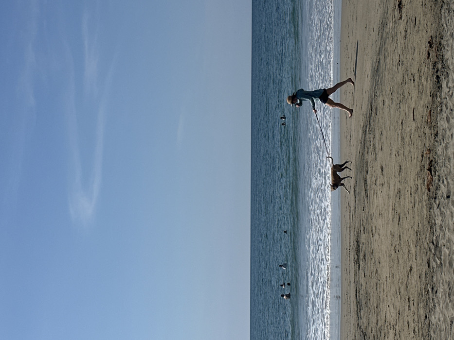 - "A dog on a leash runs on a beach, followed by a person" by FM-Yq6e22, licensed under CC BY 4.0
