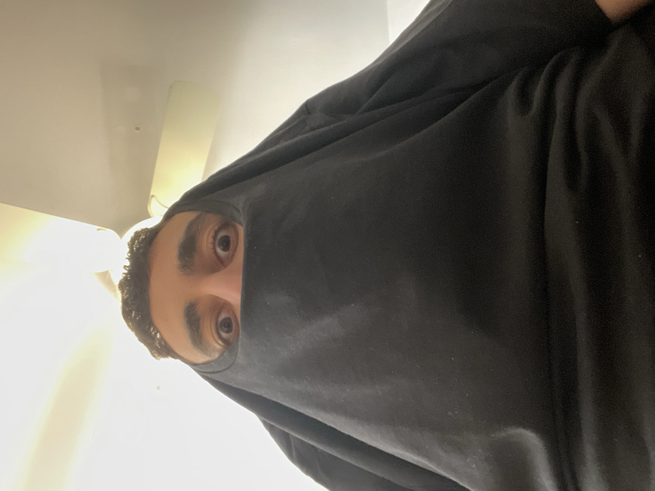 - "The image displays an adult male peering from under a black t-shirt in an indoor setting" by FM-rT7q52, licensed under CC BY 4.0