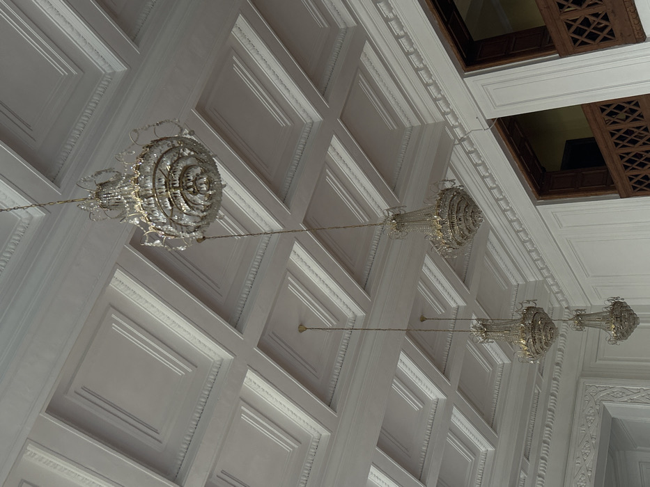 - "The image presents an upward-angled view of a formal interior, identified as a chamber within the National Assembly building in Sofia, Bulgaria" by FM-PXegS2, licensed under CC BY 4.0