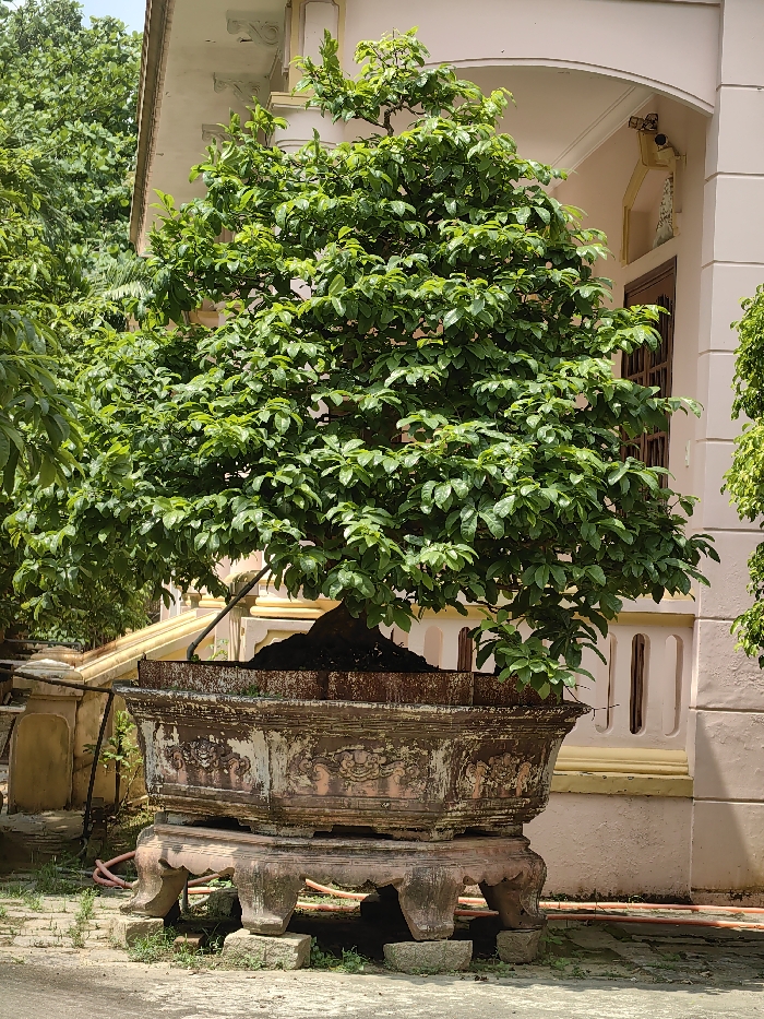 - "A large, densely foliated bonsai tree occupies the center of the image, set within an ornate, weathered rectangular planter" by FM-gnqSa2, licensed under CC BY 4.0