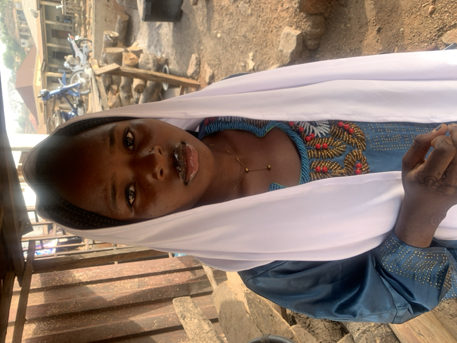 An image captured in Okene, Nigeria, depicts a young female standing outdoors, looking directly at the camera