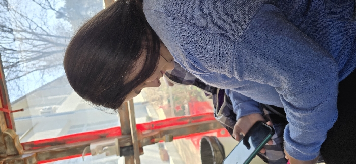 - "A side-profile view depicts an individual, likely female, with dark hair, seated indoors and looking down at a dark-colored smartphone with a green case, held in both hands" by FM-EwSuH2, licensed under CC BY 4.0